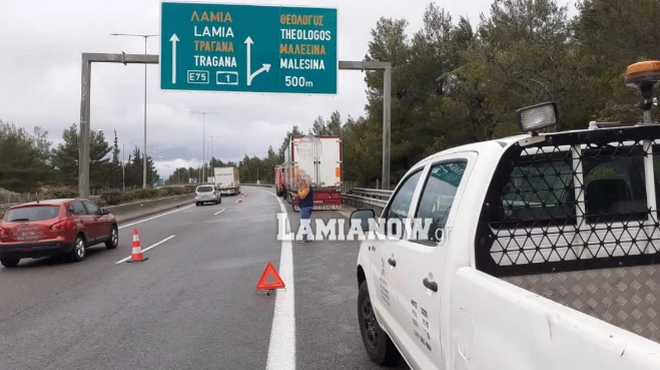 Στο 128χλμ της Ε.Ο. στην είσοδο της Μαλεσίνας έσπασε ο “σταυρός” και ράγισε το ρεζεβρουάρ ενός φορτηγού με κατεύθυνση προς Λαμία, με αποτέλεσμα να γεμίσει το οδόστρωμα πετρέλαιο.