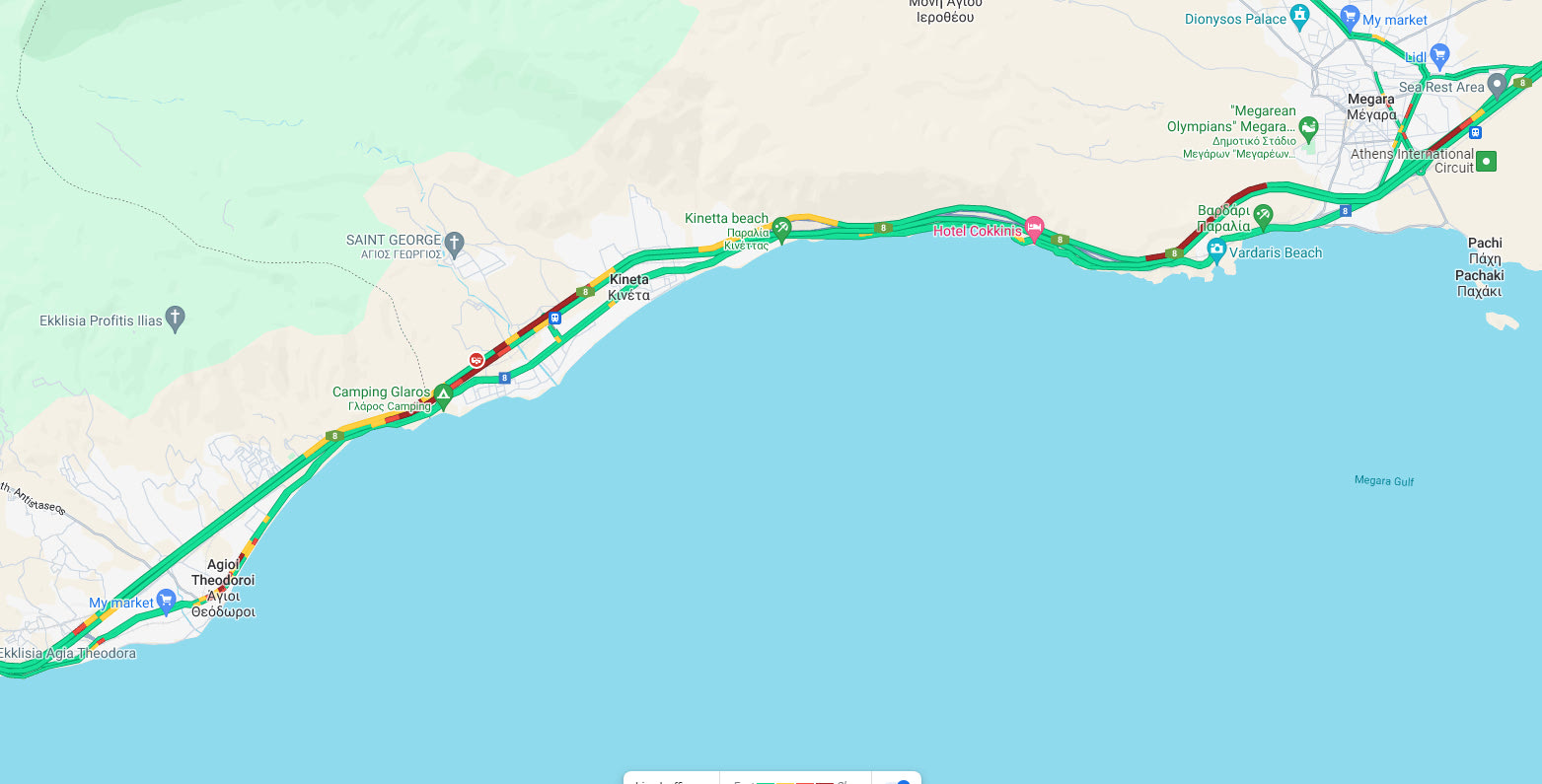 Αυτή τη στιγμή γίνεται εκτροπή κυκλοφορίας από τον κόμβο της Κινέτας και στο σημείο επικρατεί κυκλοφοριακή συμφόρηση.
