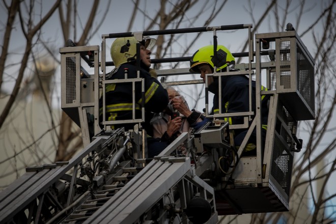 Οι πυροσβέστες απεγκλώβισαν με ασφάλεια μία γυναίκα από το μπαλκόνι του 5ου ορόφου με χρήση κλιμακοφόρου οχήματος και άλλη μία ηλικιωμένη γυναίκα από την ταράτσα, ενώ όλοι οι υπόλοιποι ένοικοι της πολυκατοικίας απομακρύνθηκαν με ασφάλεια μέσω του κλιμακοστασίου.