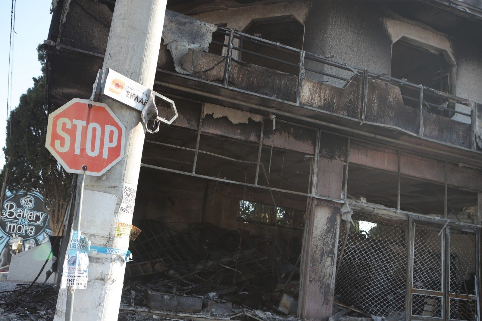 Από την πρόσκρουση ξέσπασε μεγάλη πυρκαγιά όπου κατέστρεψε ολοσχερώς το ισόγειο κατάστημα, το αυτοκίνητο, αλλά και τον πρώτο όροφο του κτιρίου.