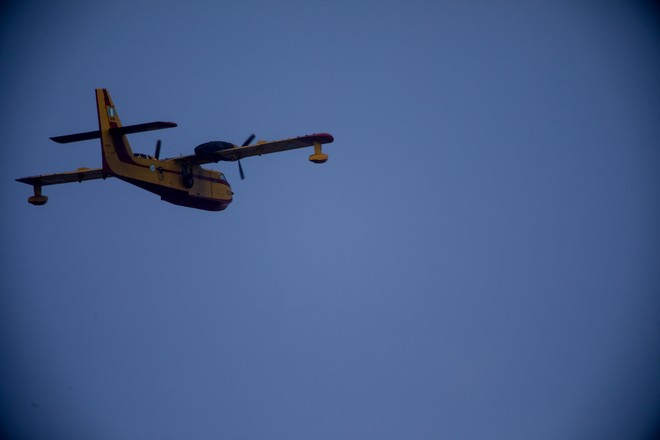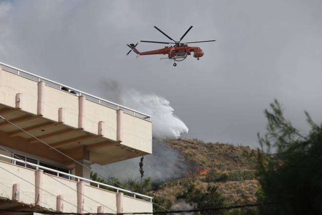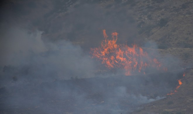 Σύμφωνα με την Πυροσβεστική, κοντά στο σημείο βρίσκονται σπίτια τα οποία δεν κινδυνεύουν καθώς η φωτιά κατευθύνεται προς δάσος.