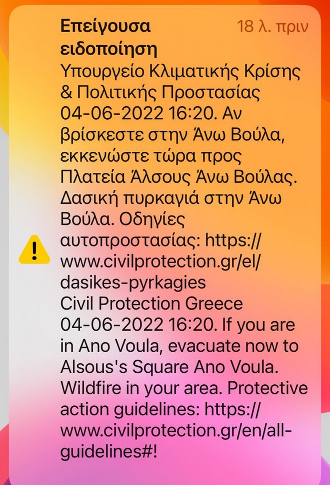 Φωτιά σε Γλυφάδα – Βούλα: Η ειδοποίηση του 112 για εκκένωση κατοικιών