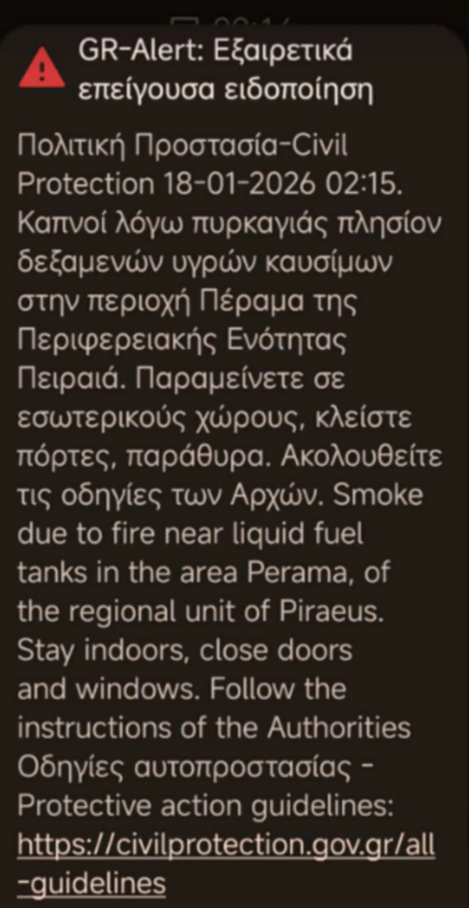 Παράλληλα, με μήνυμά του το 112 προτρέπει τους πολίτες να μείνουν στα σπίτια τους λόγω των πυκνών καπνών που υπάρχουν στην περιοχή.