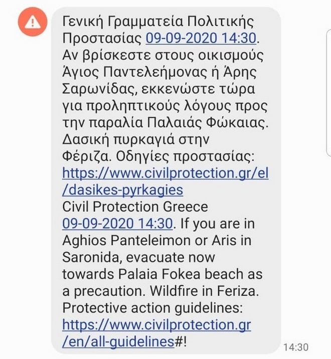 Σύμφωνα με την Πυροσβεστική στην περιοχή πνέουν ισχυροί άνεμοι ενώ δόθηκε εντολή να εκκενωθούν τρεις οικισμοί: Φέριζα, ‘Αγιος παντελεήμονας και Άρης Σαρωνίδας καθώς κι ένα οικοτροφείο που υπάρχει στην περιοχή. Μάλιστα οι κάτοικοι των περιοχών ενημερώθηκαν με μήνυμα απο το 112 ωστε να κινηθούν προς την παραλία της Παλαιάς Φώκαιας.