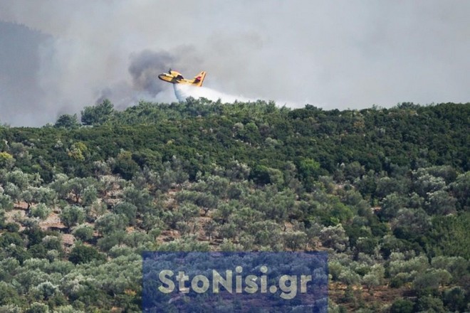 Σύμφωνα με την πυροσβεστική, η εικόνα είναι καλύτερη ενώ η προσπάθεια συνεχίζεται από τα επίγεια για πιθανές αναζωπυρώσεις.