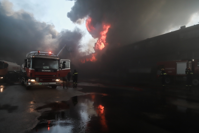 Παράλληλα κλιμάκια των Πυροσβεστών επιχειρούν από το πρωί να σβήσουν όλες τις εστίες, ενώ μέρος του κτιρίου έχει καταρρεύσει.