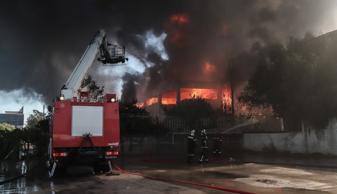 Συνεχίζεται, αλλά με χαμηλή ένταση να καίει η φωτιά στο εργοστάσιο πλαστικών. Ποιες περιοχές της Αττικής επηρεάζονται από τις τοξικές ουσίες που εκλύονται από την καύση πλαστικών.