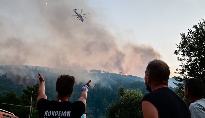 Για τον λόγο αυτό μέχρι τη δύση του ηλίου συνέχισαν να πετούν τρία ελικόπτερα, τρία αεροσκάφη, ανάμεσά τους και το θηριώδες Beriev-200 ενώ ολονύχτια μάχη με τις φλόγες θα δώσουν 15 οχήματα με 37 πυροσβέστες, μία ομάδα πεζοπόρο τμήμα και εθελοντές πυροσβέστες ενώ συνδράμουν και υδροφόρες των ΟΤΑ.