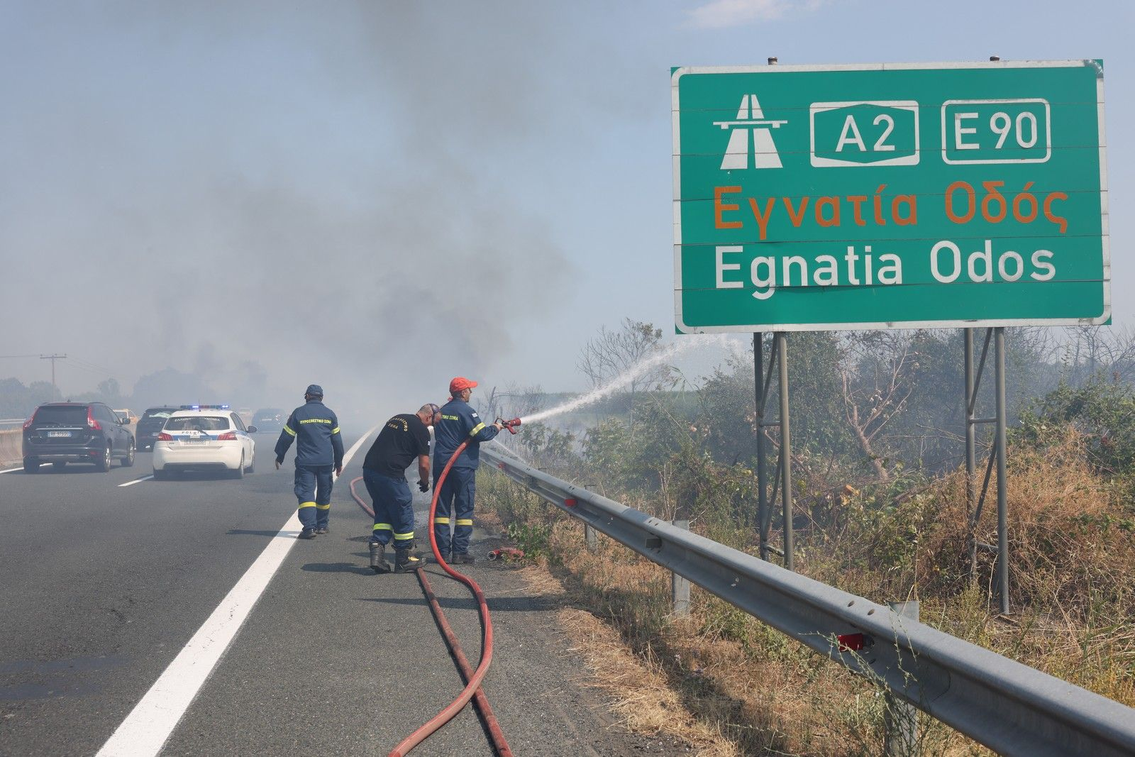 Πυρκαγιά στην Αλεξάνδρεια Ημαθίας, παραπλεύρως της Εγνατίας Οδού, Πέμπτη 17 Ιουλίου 2025. (ΒΑΣΙΛΗΣ ΒΕΡΒΕΡΙΔΗΣ/ΜΟΤΙΟΝΤΕΑΜ)