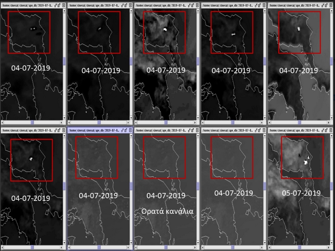 H εξέλιξη της πυρκαγιάς στην Εύβοια το απόγευμα της 4ης Ιουλίου 2019 μέσα από την δορυφορική απεικόνιση του δορυφόρου MSG.