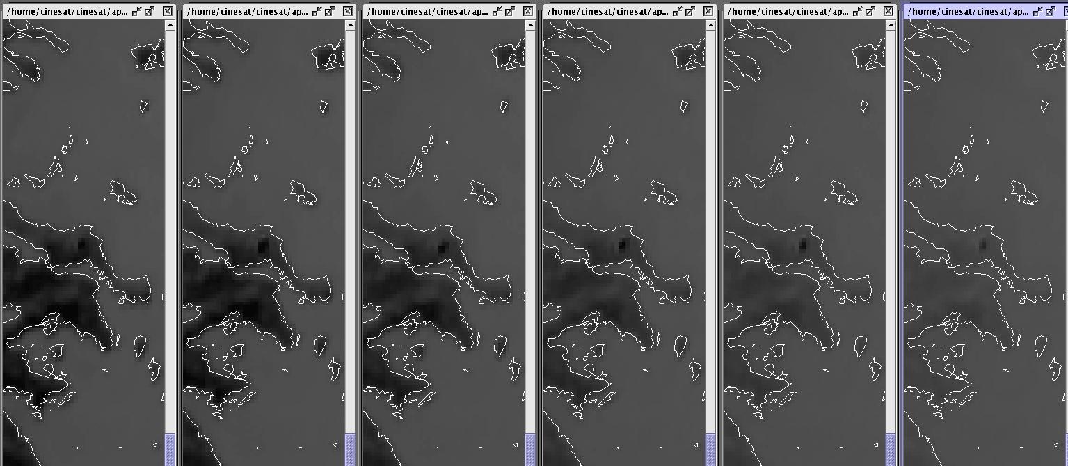 Αν κοιτάξουμε με προσοχή την Αθήνα θα διακρίνουμε το σκούρο χρώμα της θερμικής νησίδας πάνω από την πόλη της Αθήνας που διακρίνεται καλύτερα τις πρώτες απογευματινές ώρες που η θερμοκρασία ήταν υψηλότερη. Προς το βράδυ αυτή θερμοκρασιακή αντίθεση δεν είναι τόσο εμφανής.