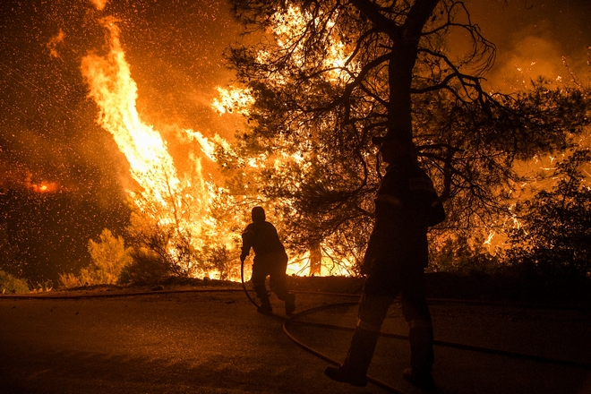 Με το πρώτο φως της ημέρας συνεχίζονται για 2η μέρα οι προσπάθειες κατάσβεσης της μεγάλης πυρκαγιάς στην Εύβοια Eurokinissi