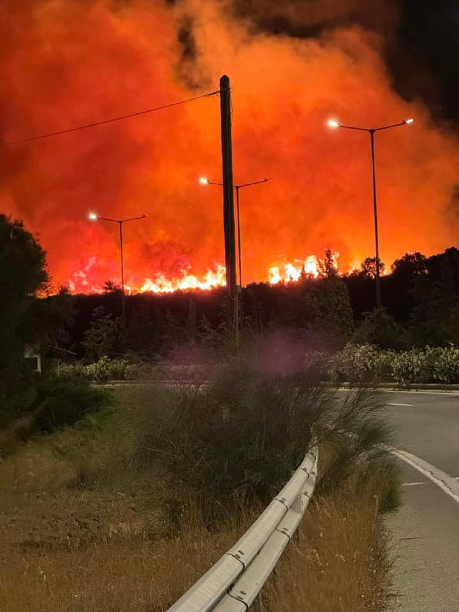 Τα βίντεο που έχουν αναρτηθεί στα μέσα κοινωνικής δικτύωσης δείχνουν τη συγκλονιστική εικόνα από το πύρινο μέτωπο με τις φλόγες και τους πυκνούς καπνούς να υψώνονται πάνω από τα δέντρα.