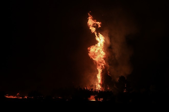 Μαίνεται η φωτιά στην Κορινθία. Πυροσβέστες επιχειρούν στο έδαφος, ενώ με το πρώτο φως ξεκίνησαν οι ρίψεις νερού. Υψηλός κίνδυνος πυρκαγιάς σήμερα.