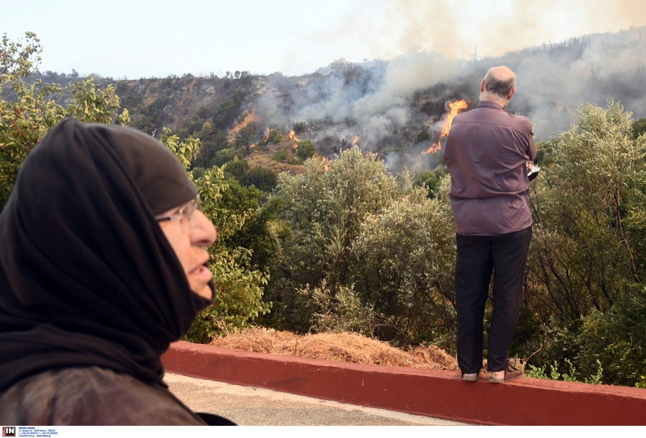 Σύμφωνα με την ιστοσελίδα pelop.gr, η καταστροφική πυρκαγιά καίει τη σκεπή του γυναικείου μοναστηριού με τους πυροσβέστες και τους εθελοντές να δίνουν τιτάνια μάχη για να αποσοβήσουν τα χειρότερα.