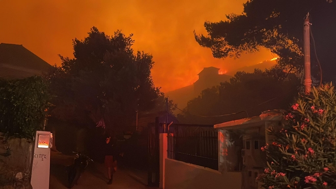 Δείτε καρέ καρέ τη στιγμή της αναζωπύρωσης της πυρκαγιάς από τις 21:00 ως τις 21:30. Τα συγκλονιστικά πλάνα του Μάνου Φραγκιουδάκη και του NEWS 24/7 από το σημείο, δείχνουν τη στιγμή που οι φλόγες πλησιάζουν τα σπίτια.