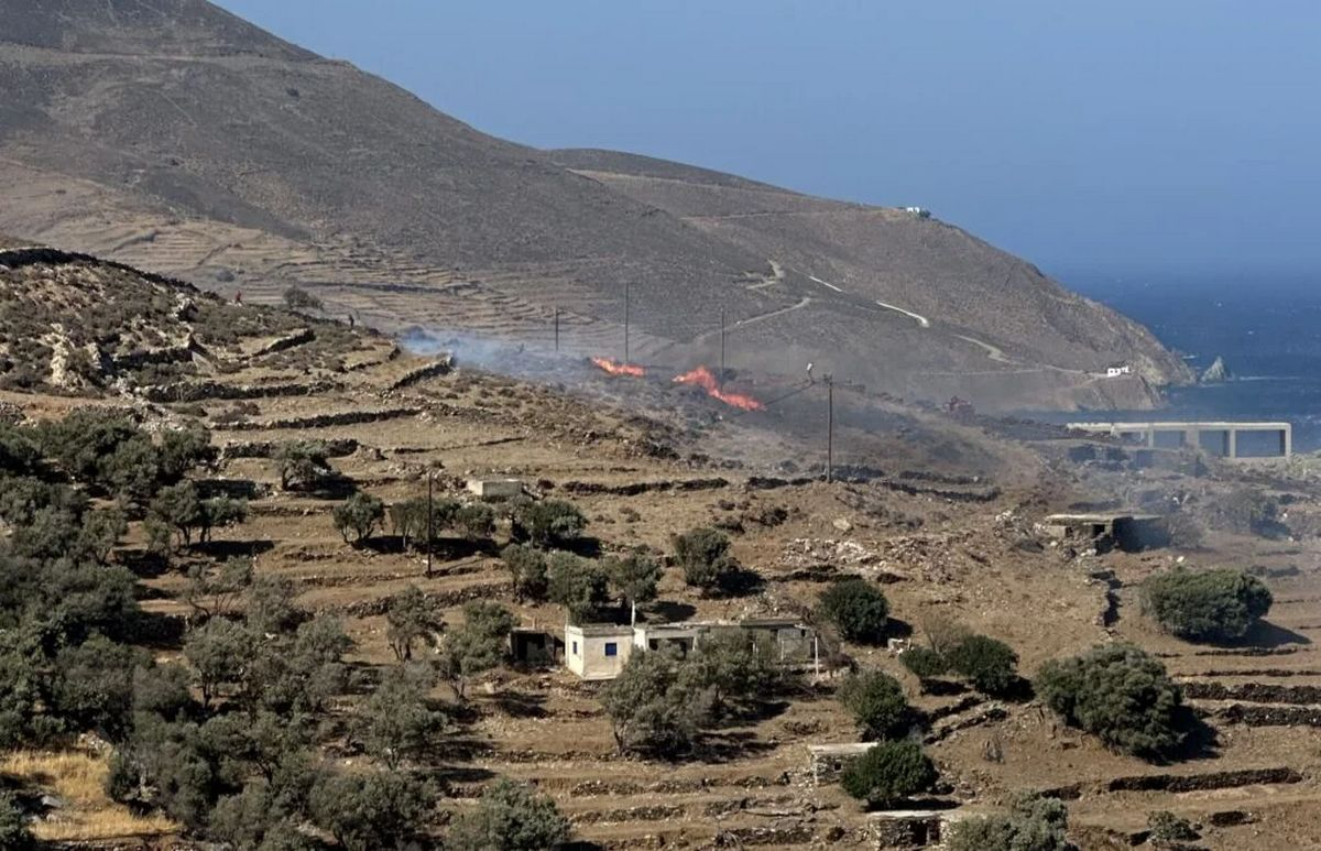 Κινητοποίηση της Πυροσβεστικής για φωτιά στην Τήνο. Στην περιοχή πνέουν ισχυροί άνεμοι.