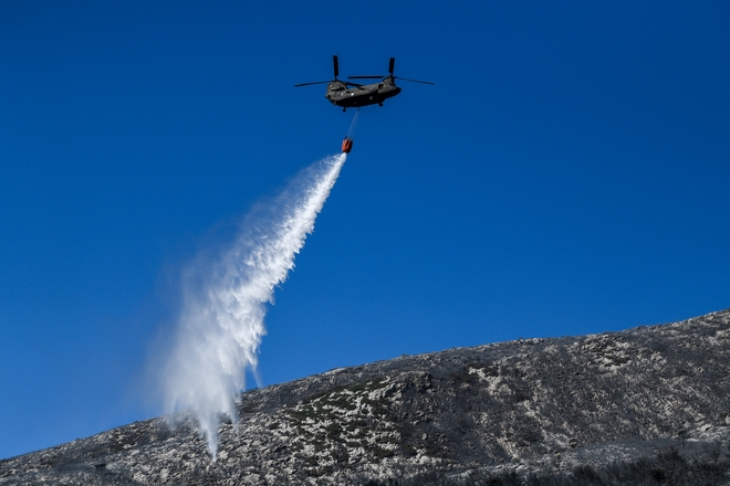 Στο μέτωπο της πυρκαγιάς φθάνουν συνεχώς δυνάμεις από την Αττική και από την περιφέρεια, ενώ με το πρώτο φως της ημέρας δόθηκε εντολή να επιχειρήσουν και εναέρια μέσα.