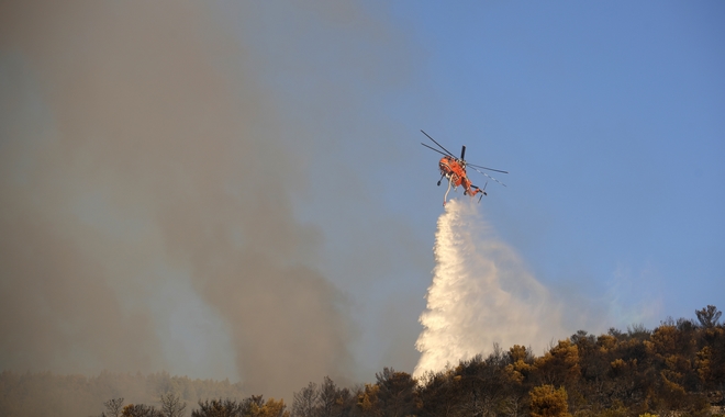 Για την κατάσβεση της φωτιάς επιχειρούν 141 πυροσβέστες με 46 οχήματα, ενώ ήδη έφθασαν στο σημείο εναέρια μέσα.