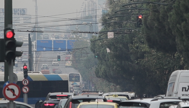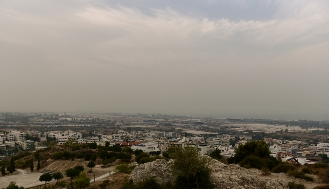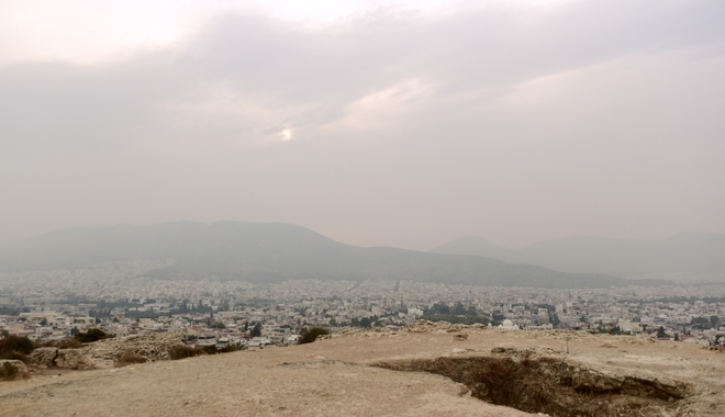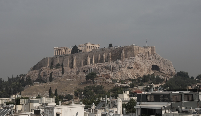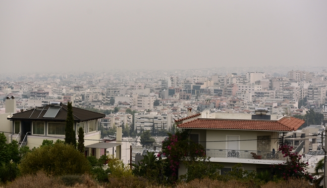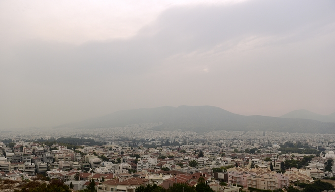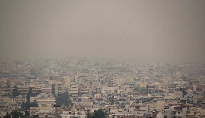 Αποπνικτική είναι η ατμόσφαιρα της Αττικής από το τοξικό νέφος που έχει σχηματιστεί εξαιτίας της μεγάλης φωτιάς.