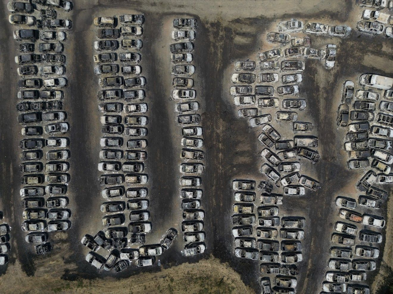 Χαρακτηριστικές είναι οι εικόνες από το τελωνείο Πάτρας, όπου 550 οχήματα μετατράπηκαν σε στάχτη.