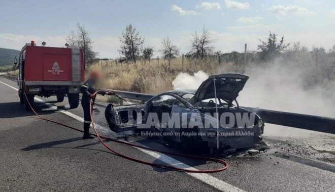 Παρανάλωμα του πυρός έγινε ένα σπορ αυτοκίνητο στο 124ο χιλιόμετρο Αθηνών-Λαμίας. Καλά στην υγεία τους τα δύο άτομα που επέβαιναν σε αυτό.