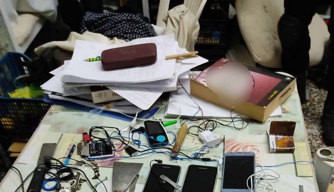 Επίσης, κατασχέθηκαν 19 χάπια, 9 κινητά τηλέφωνα και 9 φορτιστές, 5 ακουστικά κινητού τηλεφώνου και 2 μπαταρίες, 5 φορητά μέσα αποθήκευσης, 3 ηχεία και κάμερα, 5 καθρεφτάκια παρακολούθησης, 5 μεταλλικές σπάτουλες και μεταλλικό κλειδί, 35 καρφιά και 12 βίδες, 6 κομμάτια τζάμι και 3 κομμάτια σύρμα, 2 ψαλίδια, 2 νυχοκόπτες και 2 ξυραφάκια, 2 πλακάκια, μεταλλική πιρούνα και λουκέτο.
