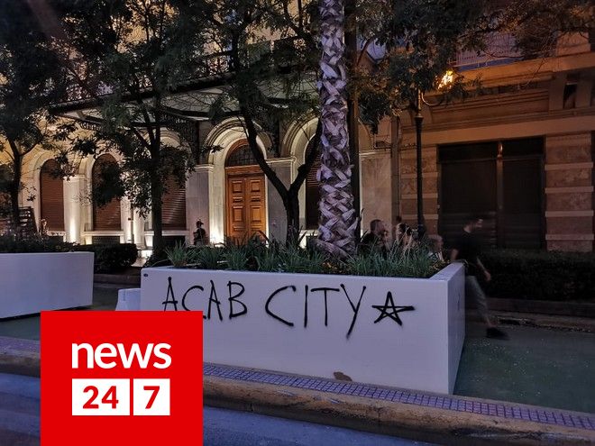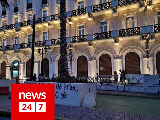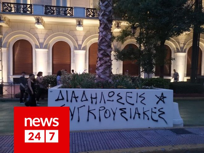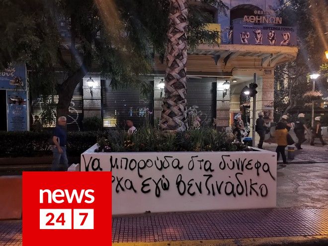 Οι “αντιγκραφιτι”, όπως τις έχει περιγράψει ο Δήμαρχος Αθηναίων, ζαρντινιέρες στις οποίες έχουν τοποθετηθεί οι ουασινγκτόνιες στο κέντρο της Αθήνας, γέμισαν με συνθήματα το απόγευμα της Τρίτης, κατά τη διάρκεια της πορείας ενάντια στο νομοσχέδιο για τις διαδηλώσεις.