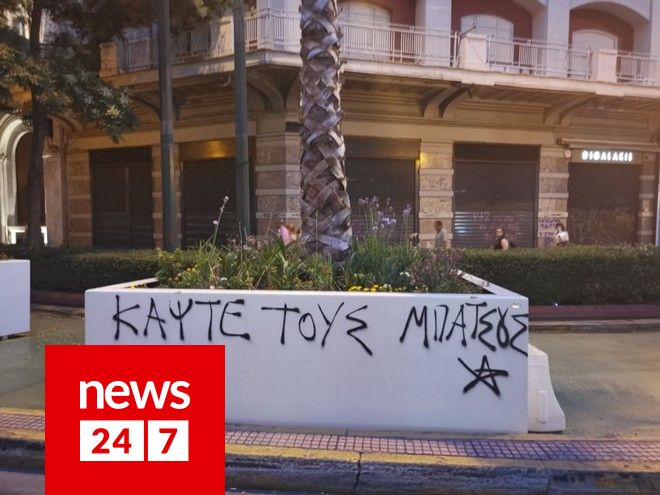 Γεμάτες με γκράφιτι είναι πλέον οι ζαρντινιέρες του Μεγάλου Περιπάτου στην οδό Πανεπιστημίου στο κέντρο της Αθήνας, αλλά και ορισμένες στην πλατεία Συντάγματος.