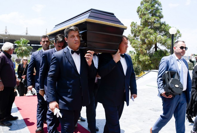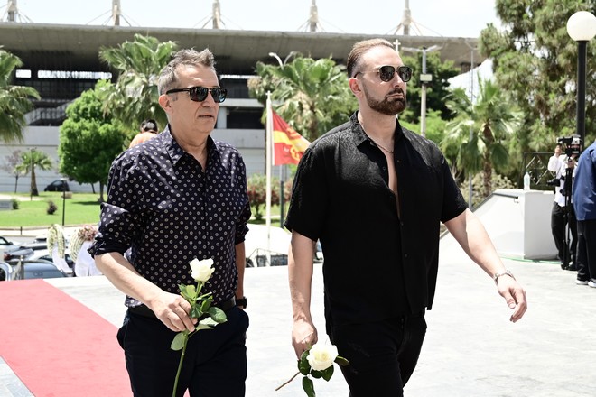 Πλήθος κόσμου είχε συγκεντρωθεί από νωρίς στον Ιερό Ναό του Αγίου Νικολάου που βρίσκεται απέναντι από το λιμάνι του Πειραιά για να πουν το τελευταίο “αντίο” στον δημοφιλή showman που άφησε την τελευταία του πνοή ύστερα από καρδιακή ανακοπή στο νοσοκομείο “Σωτηρία”, όπου νοσηλευόταν από τις 31 Μαΐου με πολλαπλές νοσηρότητες.