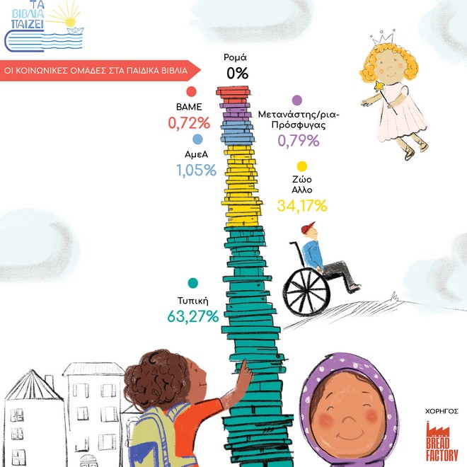 Μόλις το 2,5% των παιδικών βιβλίων που εκδόθηκαν από το 2010 και έπειτα στην Ελλάδα έχουν ως βασικούς χαρακτήρες άτομα με ειδικές ανάγκες, μετανάστες, πρόσφυγες ή Ρομά, όπως προκύπτει από σχετική έρευνα.