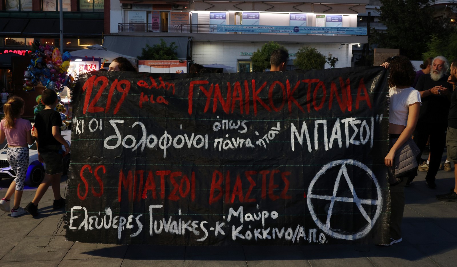 “Η πατριαρχία βιάζει και σκοτώνει, στο σπίτι στη δουλειά ποτέ καμία μόνη”, “Στεκόμαστε η μία δίπλα στην άλλη ενάντια στην πατριαρχία, καμία άλλη γυναικοκτονία” έγραφαν μεταξύ άλλων τα πανό των συγκεντρωμένων.