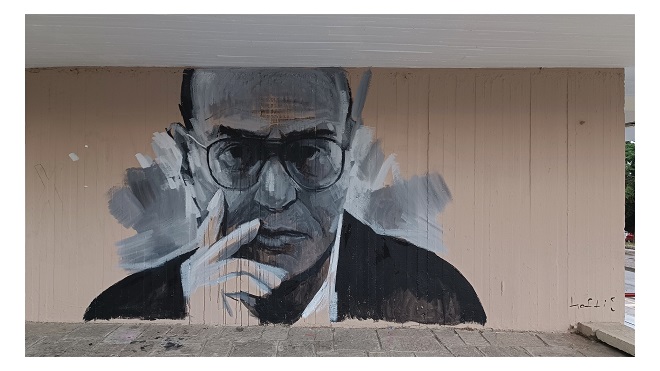 Ο ζωγράφος Γιώργος Κόφτης που φιλοτέχνησε το γκράφιτι του Θεόδωρου Αγγελόπουλου στο ΑΠΘ σχολιάζει την απόφαση του ιδρύματος να το σβήσει.
