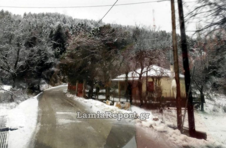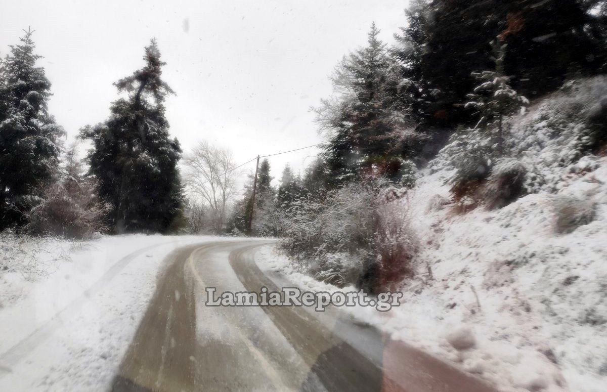 Μαγευτικό είναι το τοπίο και στην ορεινή Υπάτη του Δήμου Λαμιέων όπου το χιόνι που πέφτει ήδη από την Δευτέρα έχει πλέον σκεπάσει τα πάντα.