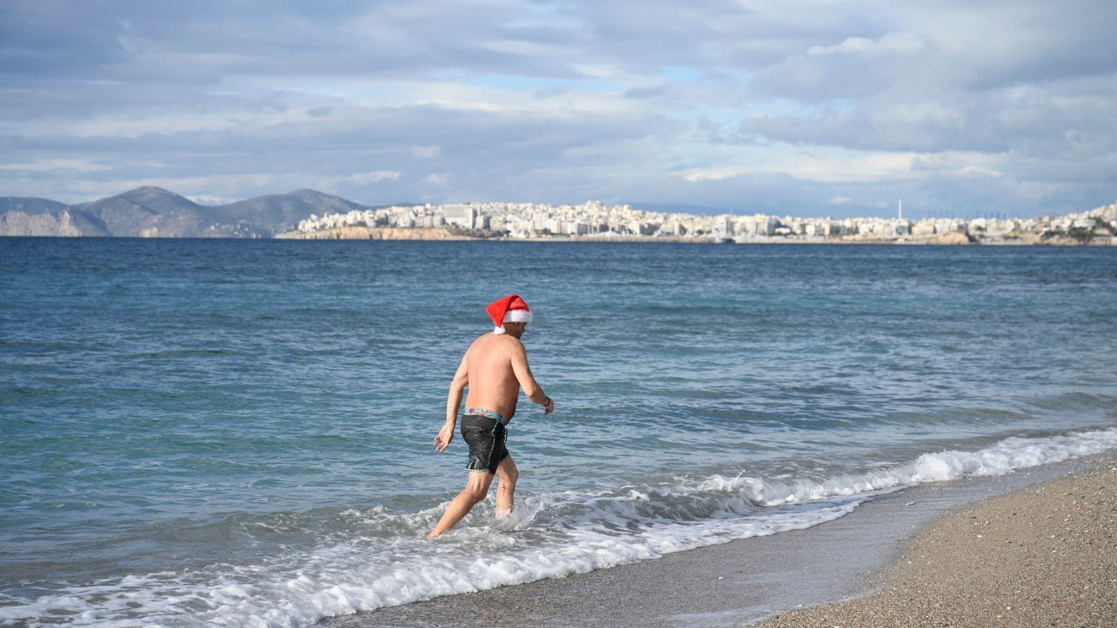 Ωστόσο υπήρχαν και κάποια ιδιαίτερα τολμηροί που εκμεταλλεύτηκαν αυτήν την ημέρα για να κάνουν μια βουτιά στην θάλασσα, αψηφώντας τις χαμηλές θερμοκρασίες.