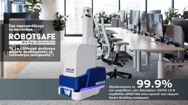 Gizelis Robotics: Το πρώτο αυτόνομο ελληνικό ρομπότ γενικής απολύμανσης ονομάζεται RobotSafe