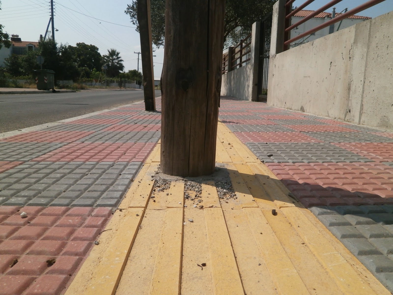 Πρόκειται για μια ξύλινη κολόνα στην οποία πάνω θα καταλήξει κάποιος τυφλός που ενδεχόμενα επιχειρήσει να κάνει χρήση της διάβασης, που θεωρητικά – και μόνο άλλωστε – έχει κατασκευαστεί για να εξυπηρετεί τις ανάγκες πολιτών με προβλήματα όρασης, με ότι αυτό μπορεί να συνεπάγεται για τη σωματική ακεραιότητα του ίδιου.
