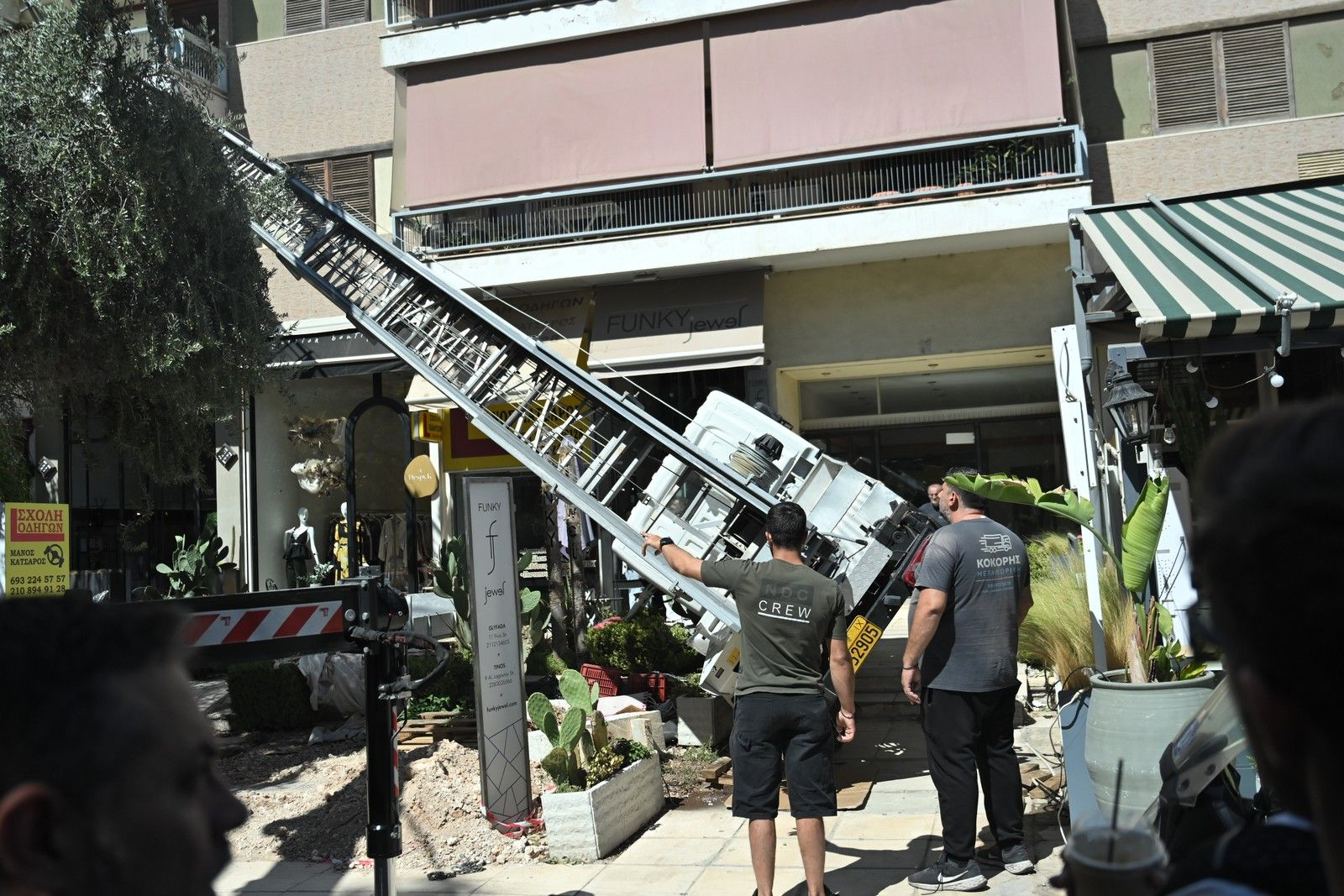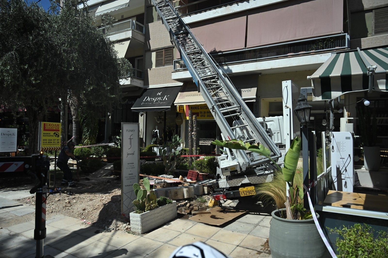 Γλυφάδα: Γερανός ανετράπη και έπεσε σε καφετέρια