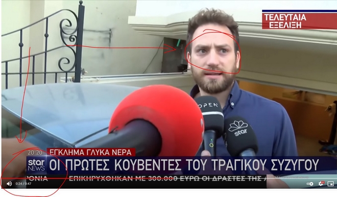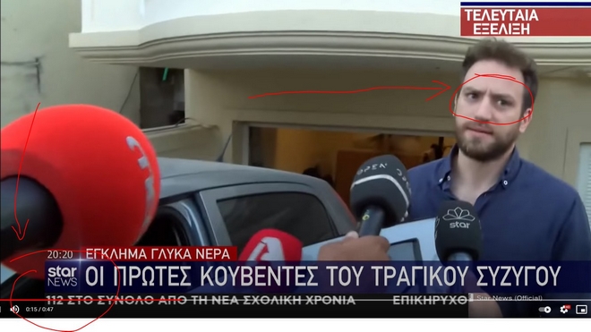 – «Στο κλιπ από την πρώτη του συνέντευξη παρατηρούμε την πλήρη απουσία συναισθημάτων, και ειδικά λύπης, θρήνου και θλιψης για τον χαμό της γυναίκας του. Καθ`όλη την διάρκεια (30 sec) που διαρκεί η συνέντευξη υπάρχει πλήρης απουσία εμφάνισης του grief muscle – του χαρακτηριστικού “ζαρώματος” του μετώπου όταν αισθανόμαστε θλίψη – το μέτωπό του παραμένει χωρίς καμία απολύτως αλλαγή.