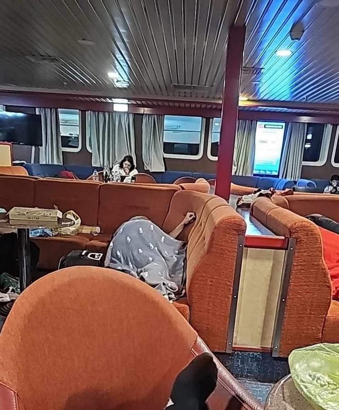 Όπως λέει η ίδια, μέσα στο πλοίο οι συνθήκες που επικρατούν είναι τραγικές. Γονείς με μικρά παιδιά που κλαίνε, επιβάτες που κοιμούνται στο πάτωμα, και παντελής έλλειψη παροχής ειδών πρώτης ανάγκης συνθέτουν το σκηνικό που επικρατεί.