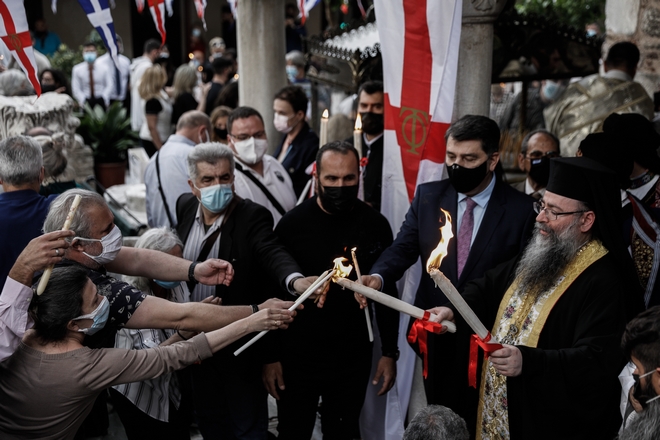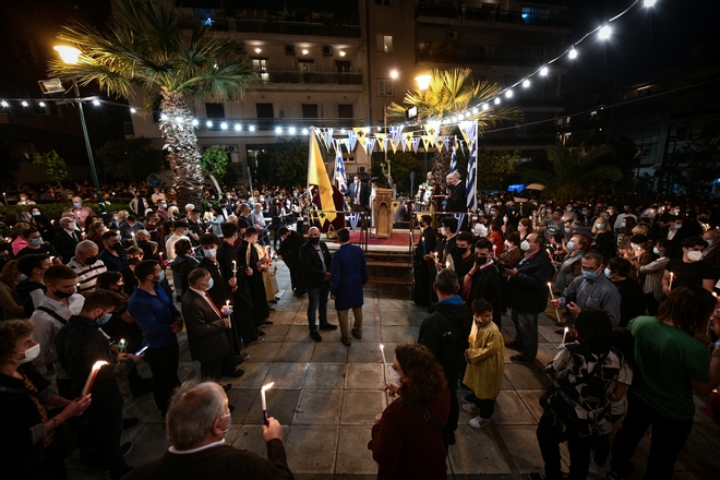 Ανάσταση στις 21.00 έκαναν οι Έλληνες - Κόσμος και χαμόγελα στις εκκλησίες ένα χρόνο μετά το περσινό Πάσχα στα μπαλκόνια μας.