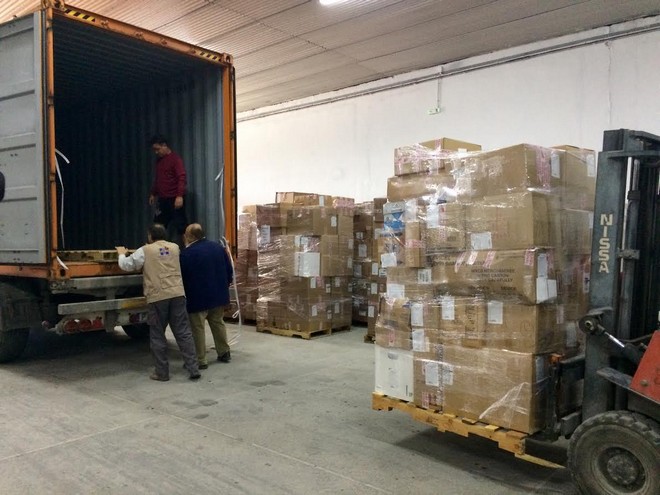 Στη Λάρισα παραδόθηκε κοντέινερ 40 ποδών με υγειονομικό υλικό βάρους 7,4 τόνων.