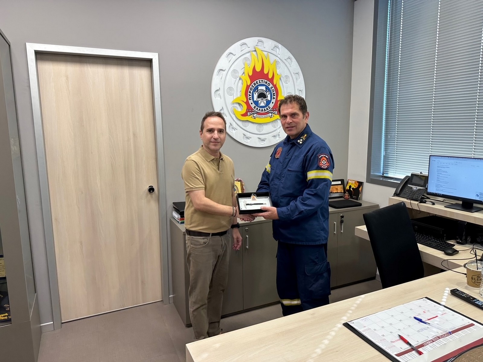 Ο Υπαρχηγός του Πυροσβεστικού Σώματος, Αντιστράτηγος κ. Μάριος Αποστολίδης δέχθηκε στο γραφείο του, τον Υπεύθυνο Δημοσίων Σχέσεων της “ΑΠΟΣΤΟΛΗΣ” κ. Ιωάννη Πεταλά και συζήτησαν τρόπους γόνιμης σύμπραξης και συνέργειας προληπτικής προστασίας.