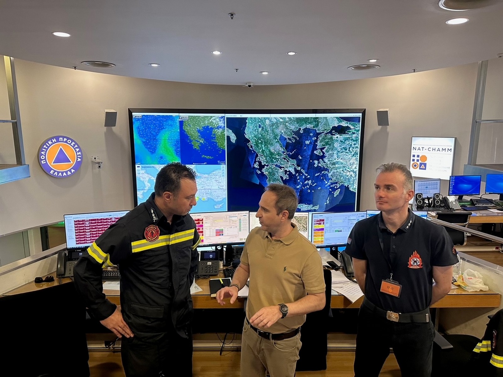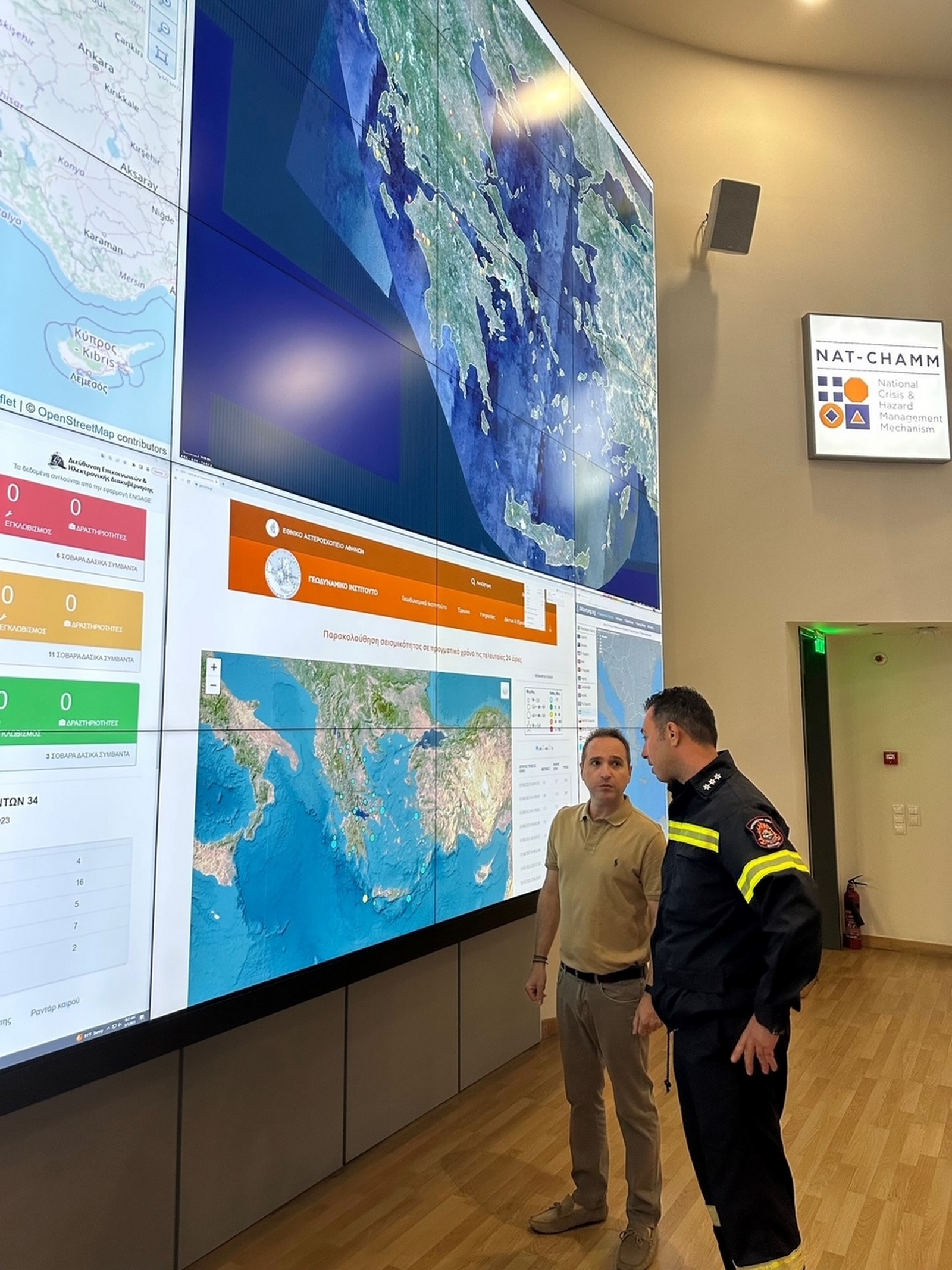 Στη συνέχεια έγινε ενημέρωση από Αξιωματικούς του Εθνικού Συντονιστικού Κέντρου Επιχειρήσεων και Διαχείρισης Κρίσεων (ΕΣΚΕΔΙΚ) για τον επιχειρησιακό συντονισμό στο πλαίσιο εκπλήρωσης της αποστολής του Πυροσβεστικού Σώματος.