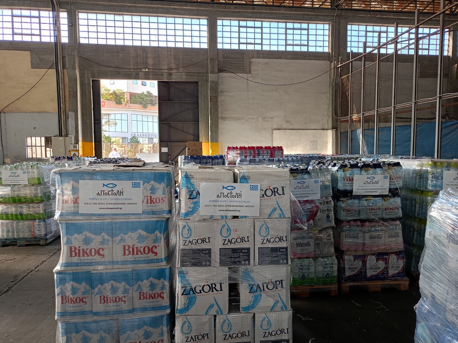 Επαρκείς ποσότητες εμφιαλωμένου νερού παραδόθηκαν στο Αρχηγείο Πυροσβεστικού Σώματος, Φάρος Λεωφόρος Κηφισίας στο Μαρούσι και στην Υ.ΔΙ.Π.ΥΛ. τέρμα Αττικής Οδού έξοδος Μάνδρας, Μάνδρα θέση Ξηροπήγαδο για τις ανάγκες στις συγκλονιστικές μάχες που δίνουν με τις φλόγες οι πυροσβέστες.