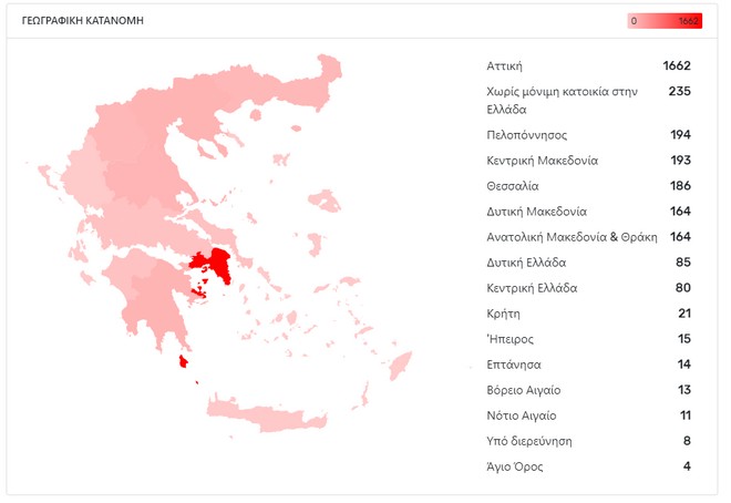 Η διασπορά των κρουσμάτων κορονοϊού στην Ελλάδα