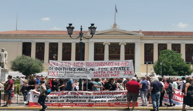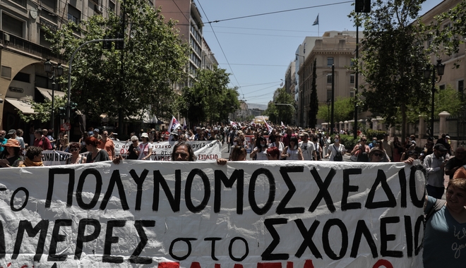 Την απόσυρση του πολυνομοσχεδίου του υπουργείου Παιδείας με τίτλο “Αναβάθμιση του σχολείου και άλλες διατάξεις“, το οποίο φέρνει σημαντικές αλλαγές σε όλες τις βαθμίδες της εκπαίδευσης, ζητούν οι εκπαιδευτικοί, μαθητές και φοιτητές, οι οποίοι πραγματοποίησαν 24ωρη απεργία και πορεία διαμαρτυρίας από τα Προπύλαια ως την Βουλή, το μεσημέρι της Τρίτης (09/06).
