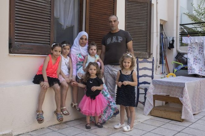 Η οικογένεια Bakri στην αυλή του σπιτιού τους, στο Ηράκλειο Κρήτης, http://estia.unhcr.gr/