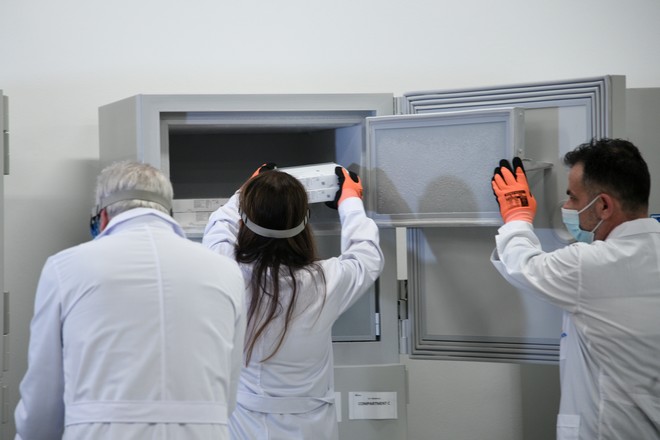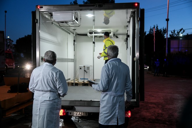 Λίγο μετά τις 7 το πρωί έφτασε η πρώτη παρτίδα των 9.750 δόσεων εμβολίων κατά της covid-19 από την εταιρεία Pfizer-BioΝTech σε κεντρική φαρμακαποθήκη της Αττικής.