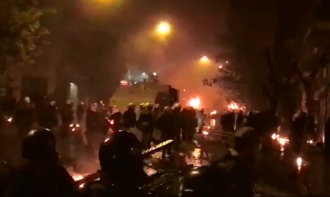 Με συντονισμένη επέμβαση της αστυνομίας με χρήση του "Αίαντα", χημικά και κρότου-λάμψης, έπεσαν τα οδοφράγματα στην Τοσίτσα μετά την πορεία για τον Αλέξανδρο Γρηγορόπουλο.